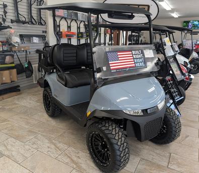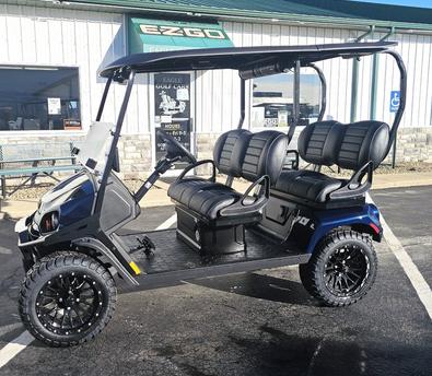 Patriot Blue, Black Seat, Rear Flip Seat w/Trunk, Long Modular Top, Aluminum Rims, Dual USB Charger, 20" Tires on 12" Aluminum Rims, LED Headlights, Taillights, Horn, Brake Lights, In Dash Turn Signals Windshield, Mirror, Charger,& 2 Year Warranty