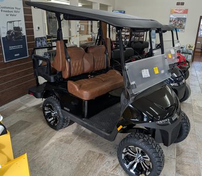 Black, Black Seat, Rear Flip Seat w/Trunk, Long Modular Top, Aluminum Rims, Dual USB Charger, 20" Tires on 12" Aluminum Rims, LED Headlights, Taillights, Horn, Brake Lights, In Dash Turn Signals Windshield, Mirror, Charger,& 2 Year Warranty