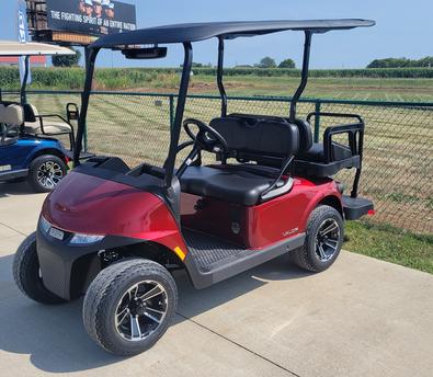Flame Red, Stone Seats, Top, Windshield, Mirror, Headlights, Taillights, Brake Lights, State of Charge Meter, Manual Dump Box, Single Samsung Lithium Pack w/8 Year Warranty, Charger,& 2 Year Warranty