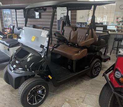 Black, Luxury Amarillo Brown Seats, Hi/Lo Beam LED Headlights, Taillights, Brake Lights, 10" Touch Screen, EcoXGear Soundbar, Top, 3Pt Seat Belts, Flip Windshield, Mirror, Tires on Aluminum Rims, Charger, Self Cancelling Turn Signals, Dual USB Outlet, Single Samsung Lithium Pack w/8 Year Warranty, Charger,& 2 Year Warranty
