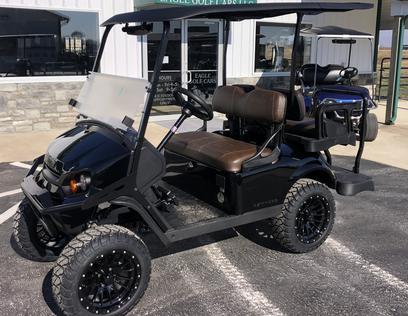 Black, Briar Brown Seats, LED Hi/Lo Beam Headlights, Taillights, Brake Lights, Horn, Gas Gauge, Brush Guard, Windshield, Mirror, 4" Lift, 4 Passenger w/Rear Flip Seat w/Trunk, Glove Box Door, Premium Steering Wheel, Black Top, 23" Paramount Tires on 14" Black Aluminum Rims, 13.5hp Kawasaki Engine, & 2 Year Warranty