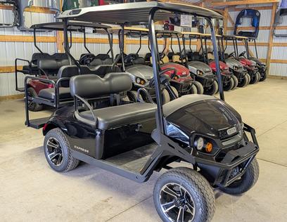 Black, Black Seats, LED Hi/Lo Beam Headlights, Taillights, Brake Lights, Horn, Gas Gauge, Brush Guard, Windshield, Mirror, 4" Lift, 4 Passenger w/Rear Flip Seat w/Trunk, Premium Steering Wheel, 80" Black Top, 23" Paramount Tires on 14" Black Steel Rims, 13.5hp Kawasaki Engine, & 2 Year Warranty