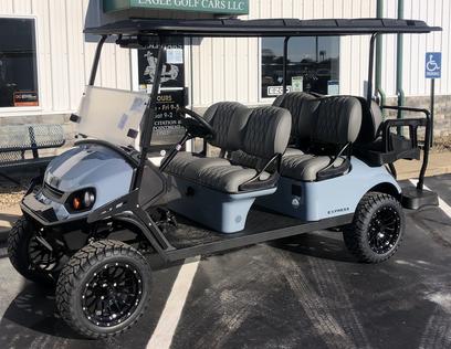 Ocean Grey, Signature Tundra Grey Seats, LED Hi/Lo Beam Headlights, Taillights, Brake Lights, Horn, Gas Gauge, Brush Guard, Windshield, Mirror, 4" Lift, 6 Passenger w/Rear Flip Seat w/Trunk, Glove Box Door, Premium Steering Wheel, 116" Black Top, 23" Paramount Tires on 14" Black Aluminum Rims, 13.5hp Kawasaki Engine, & 2 Year Warranty