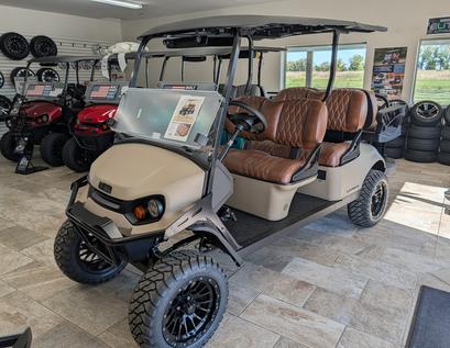 Bright White, Signature Amarillo Brown Seats, LED Hi/Lo Beam Headlights, Taillights, Brake Lights, Horn, Gas Gauge, Brush Guard, Windshield, Mirror, 4" Lift, 4 Passenger w/Rear Flip Seat w/Trunk, Glove Box Door, Premium Steering Wheel, Black Top, 23" Paramount Tires on 14" Black Aluminum Rims, 13.5hp Kawasaki Engine, & 2 Year Warranty